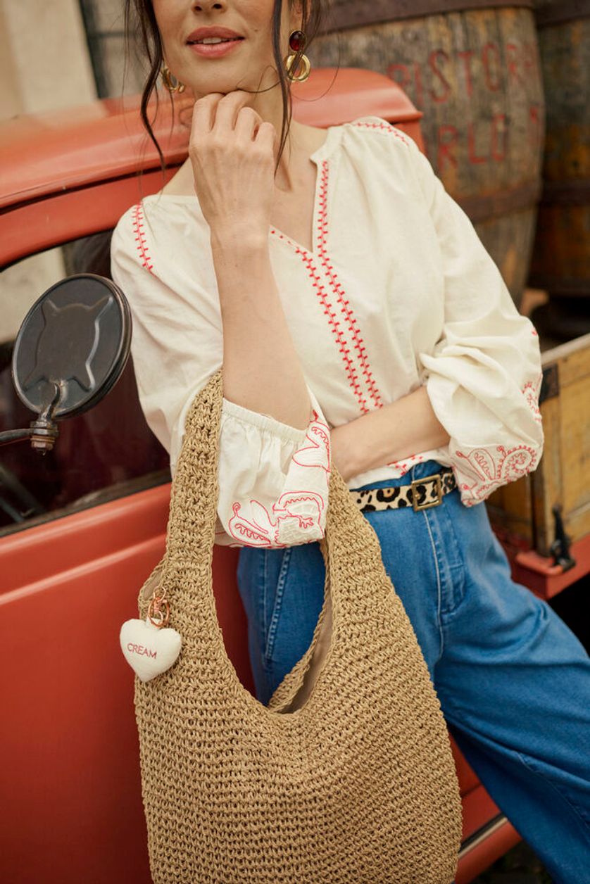 Jessica blouse er en lett og komfortabel bluse i 100 % bomull, med avslappet passform og feminine broderte detaljer langs hals og ermer. Den har V-hals og lange ermer med elastikk, som gir både komfort og stil. Lengden til hoften gjør den enkel å kombinere med både bukser og skjørt.