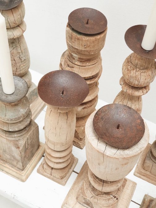 Vintage lysestaker laget av gamle bordben, Hvert enkelt eksemplar er unik. Farge, struktur og høyde vil derfor være varierende.