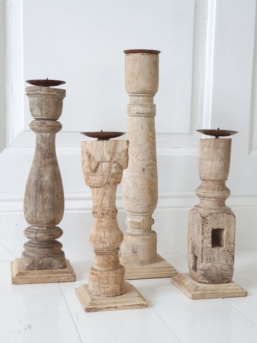 Vintage lysestaker laget av gamle bordben, Hvert enkelt eksemplar er unik. Farge, struktur og høyde vil derfor være varierende.