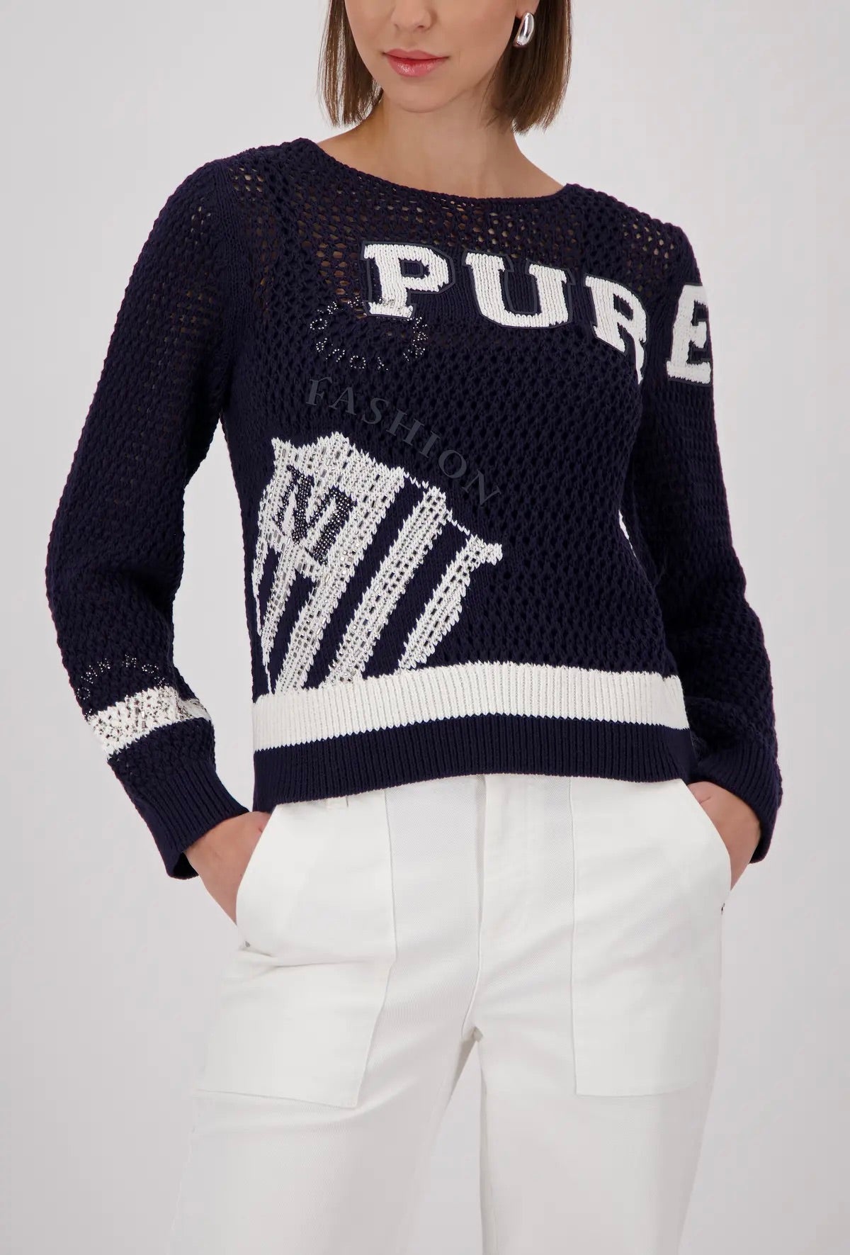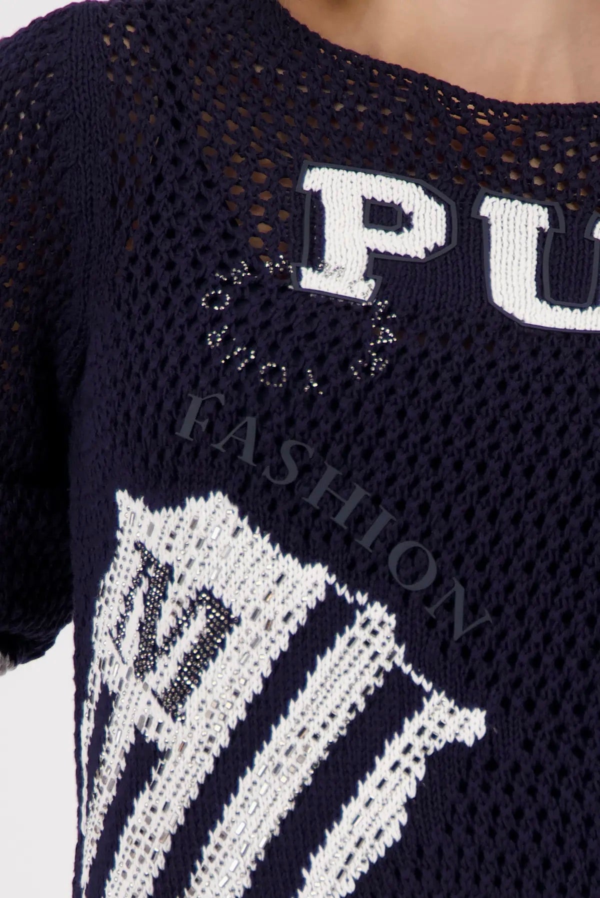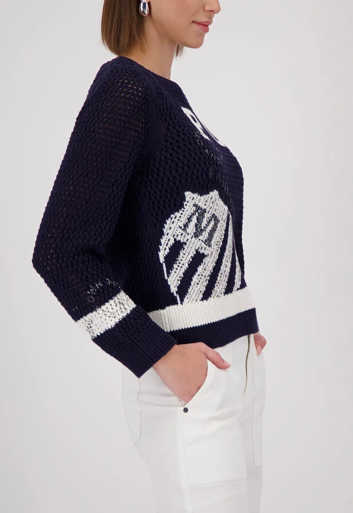 Strikket genser med tøffe detaljer og innslag av bling.