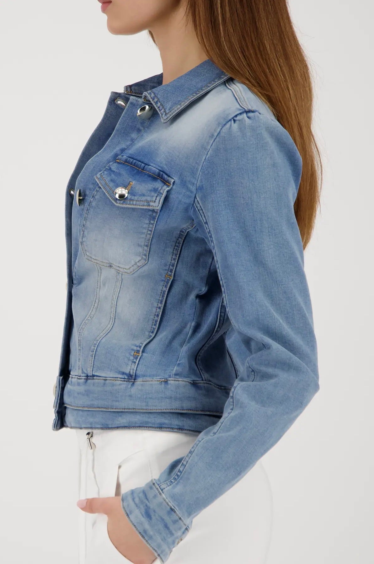 Med sine feminine puff-skuldre, klassiske ¨skjortekrage¨ og tøffe sølvknapper avslutter vi med biker-linning lengst ned på jakken!