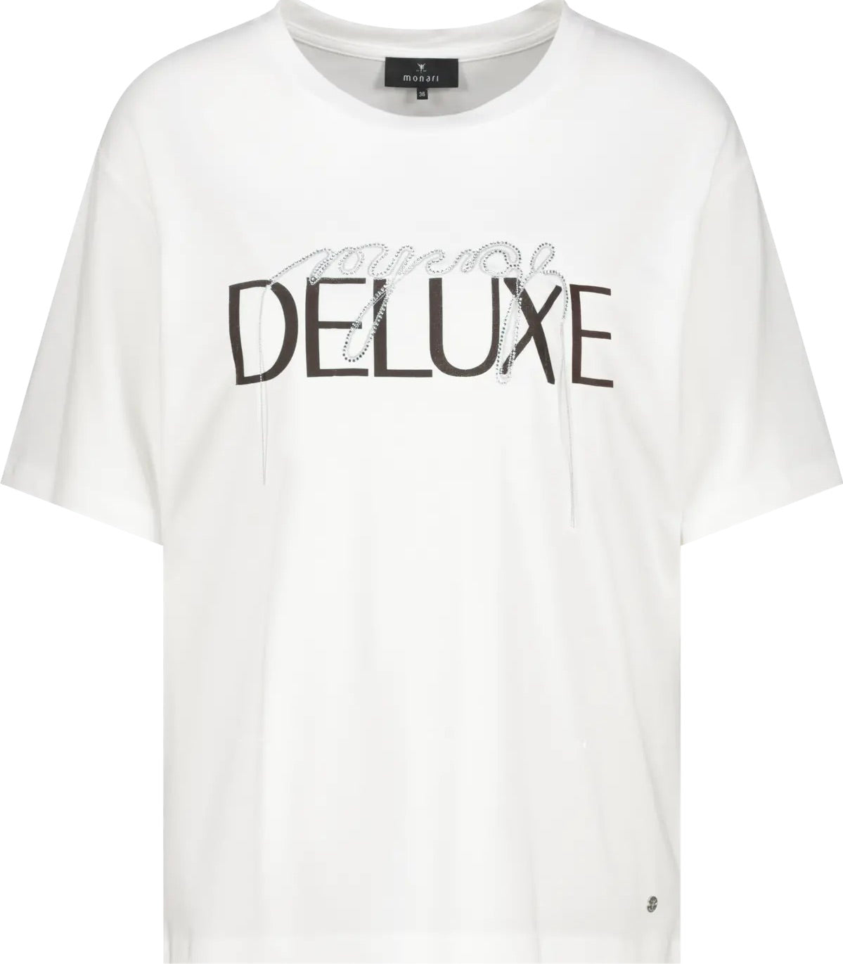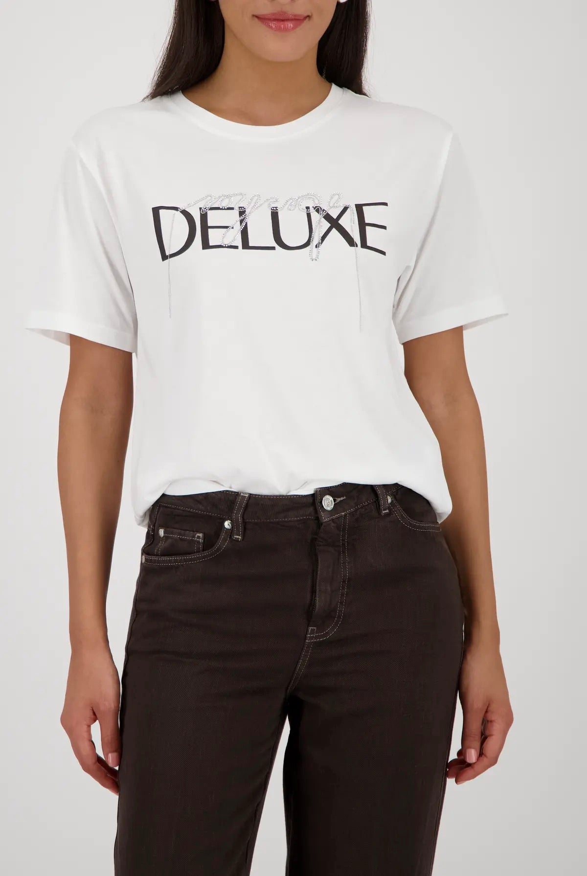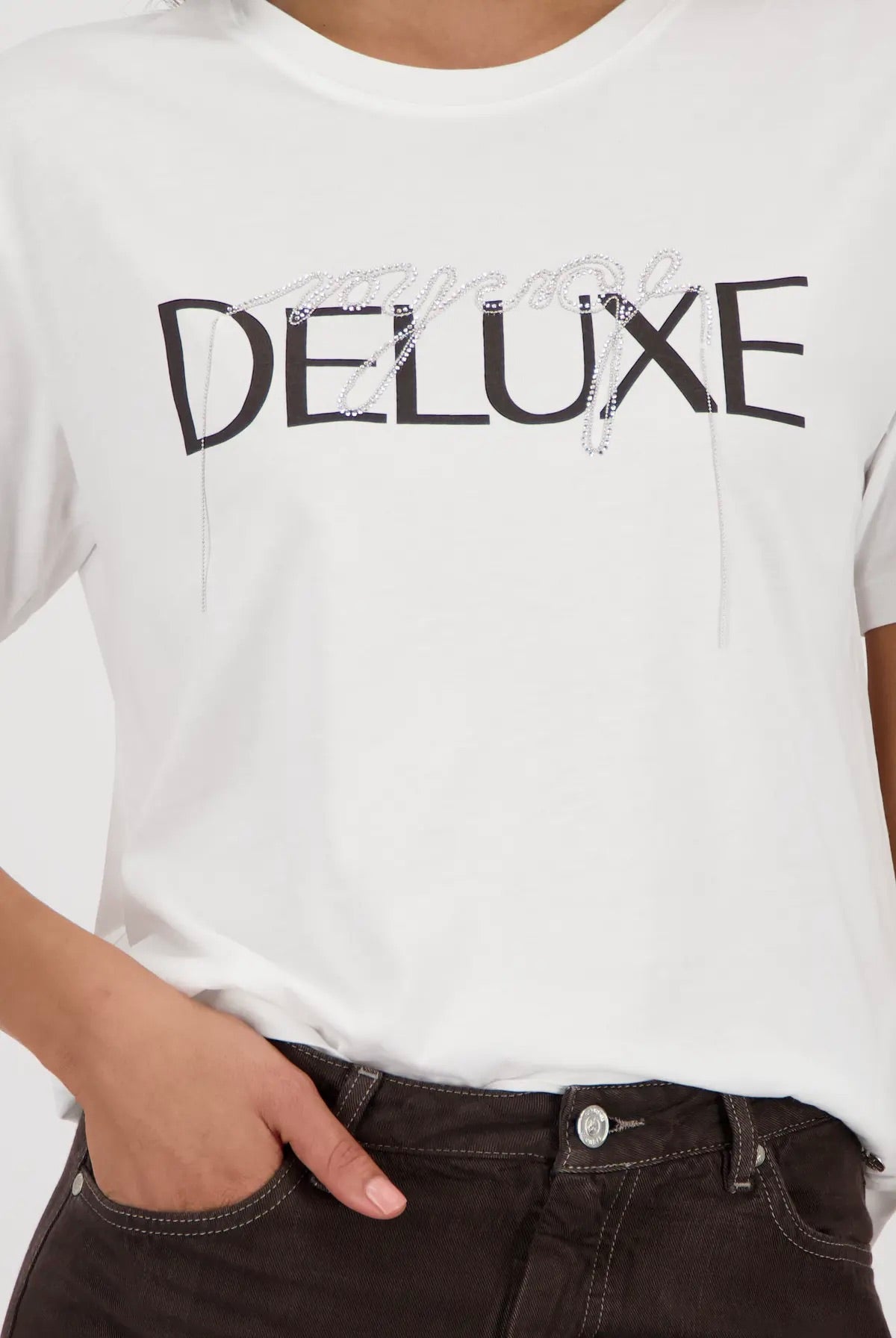 T-skjorten har regular passform. Skriften ¨Deluxe¨ er i fargen kaffebrun, en veldig delikat bruntone.