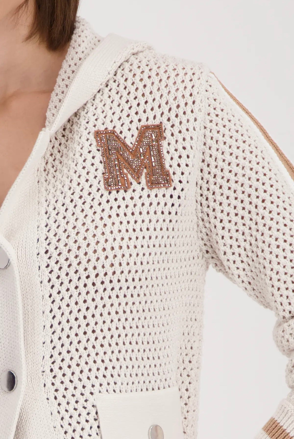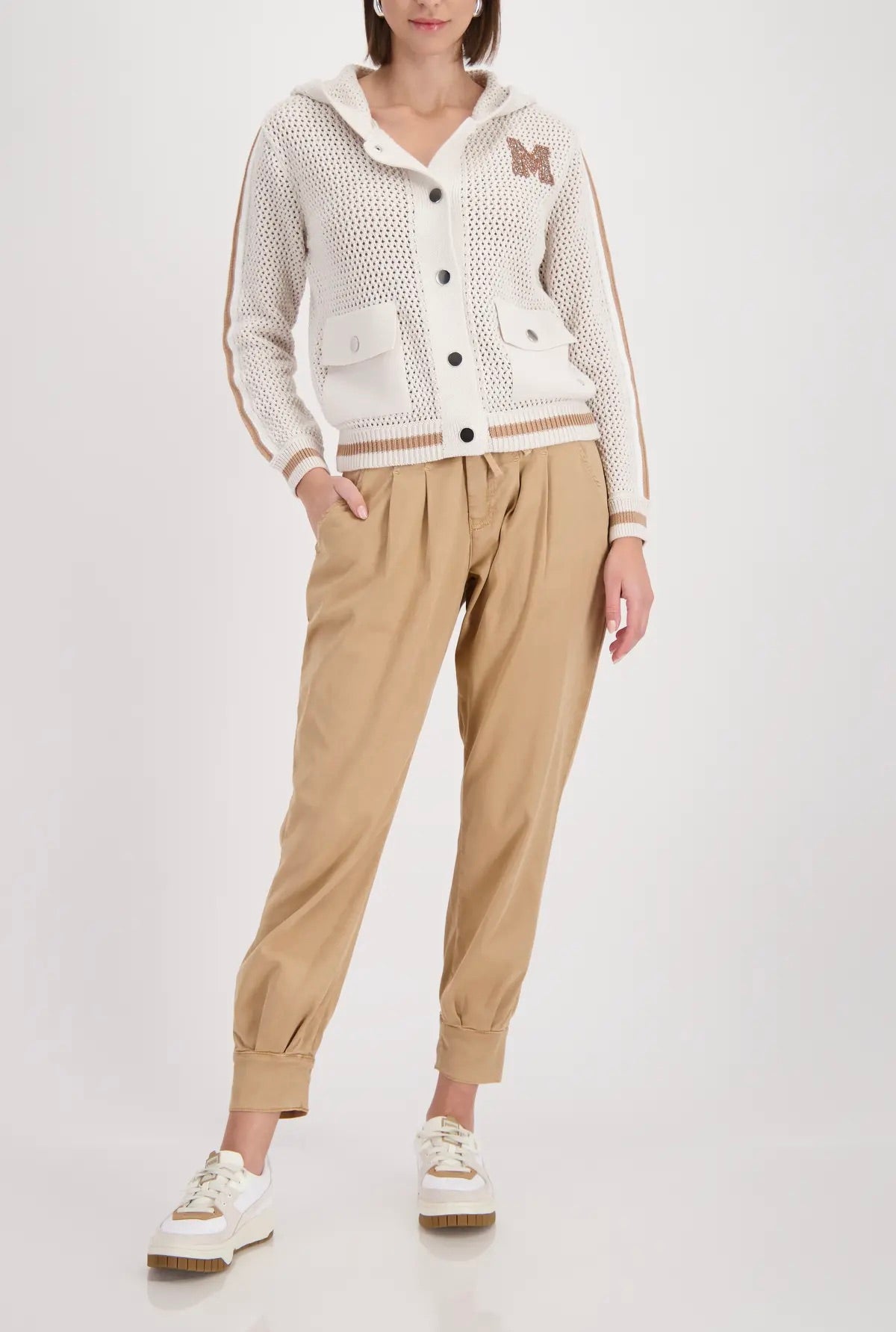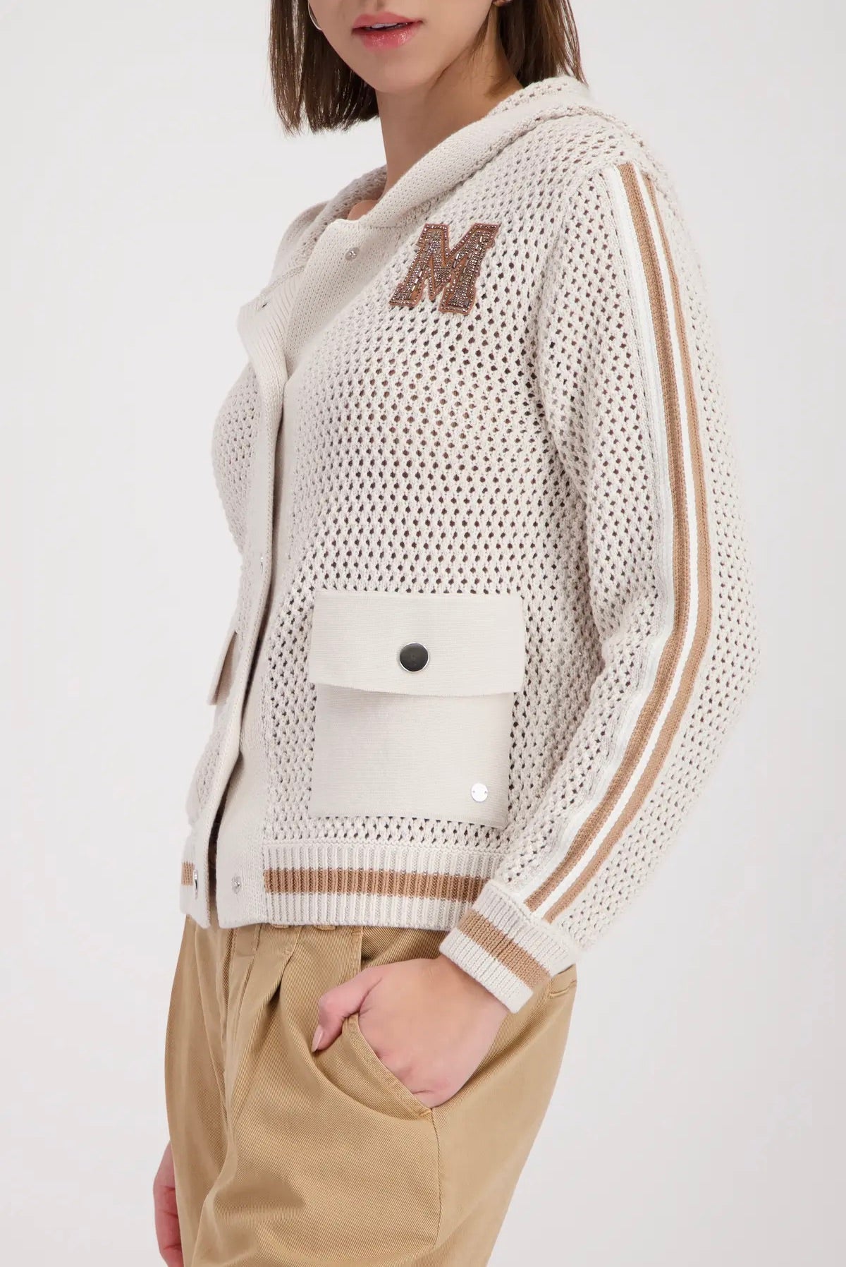 Jakken er strikket i ren bomull noe som gjør den komfortabel og myk på. Lukkes med lekre blanke trykknapper.