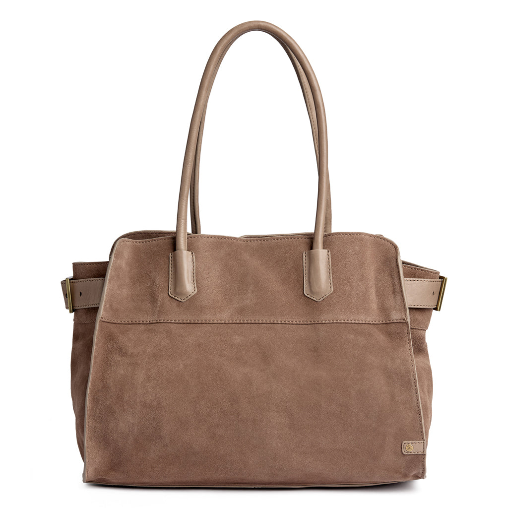 Denne shopper er produsert i den fineste og mykeste ruskinn du kan tenke deg! Designet er både luksuriøst, praktisk og elegant på samme tid. Med sitt enkle og tidløse design er det en veske du enkelt griper etter enten det gjelder jobb, shopping eller en spontan weekendtur.