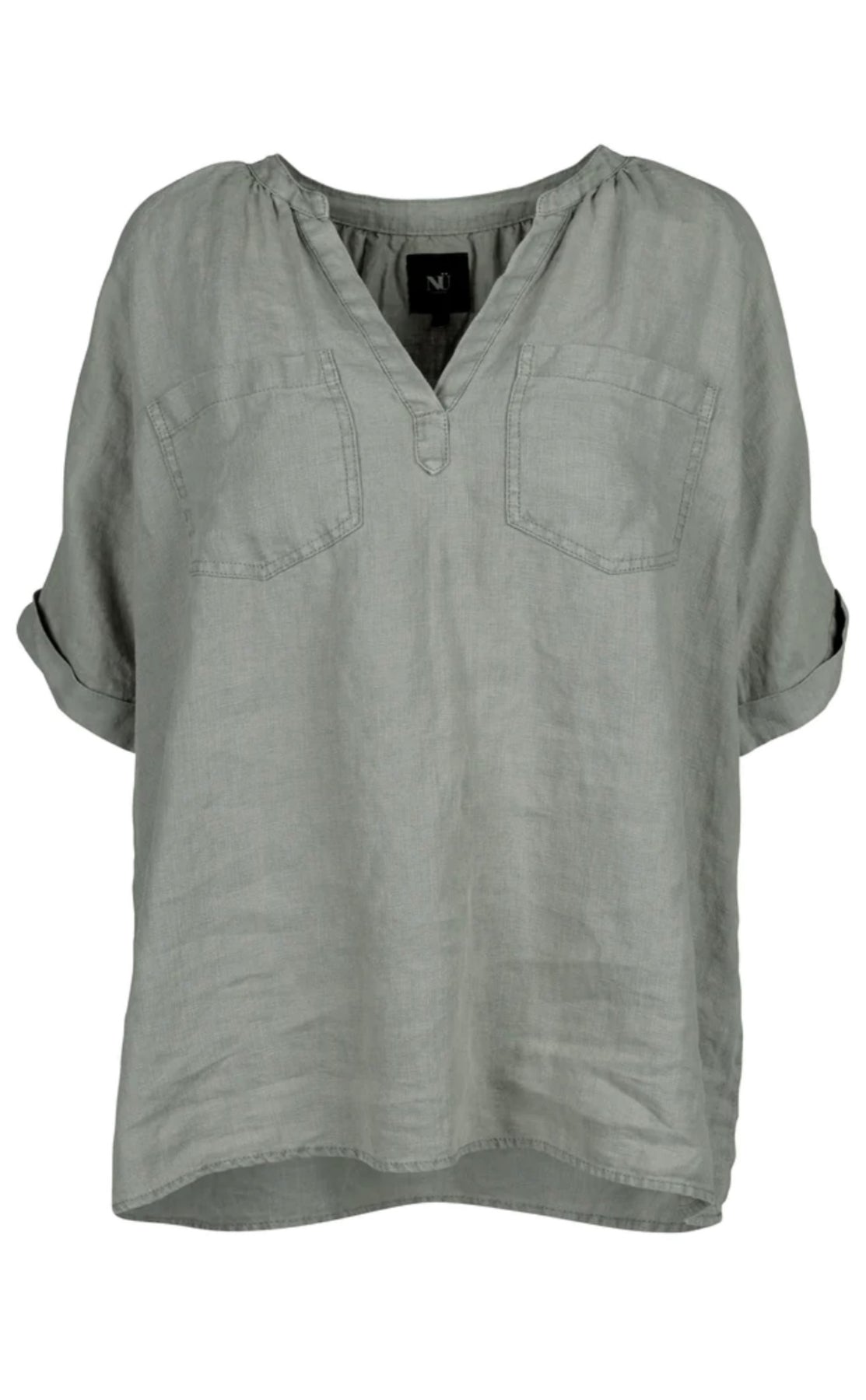 Opplev komfort og stil med denne komfortable og luftige linblusen. Match den med linbuksene fra samme serie for en elegant look. Blusens enkle design med detaljer som lommer på brystet gjør den allsidig for enhver anledning.