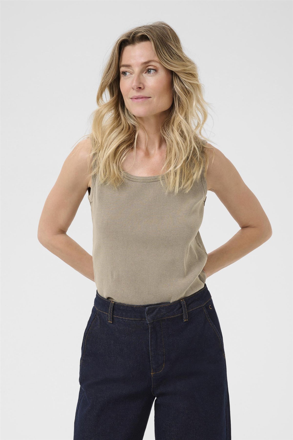 Ribbestrikket topp i 100% bomull. Tøff, "vasket" uttrykk som passer perfekt til høstens garderobe. Sett den gjerne til en stilig jeans og en strikket jakke.