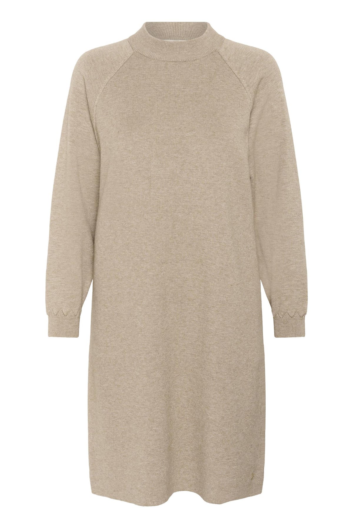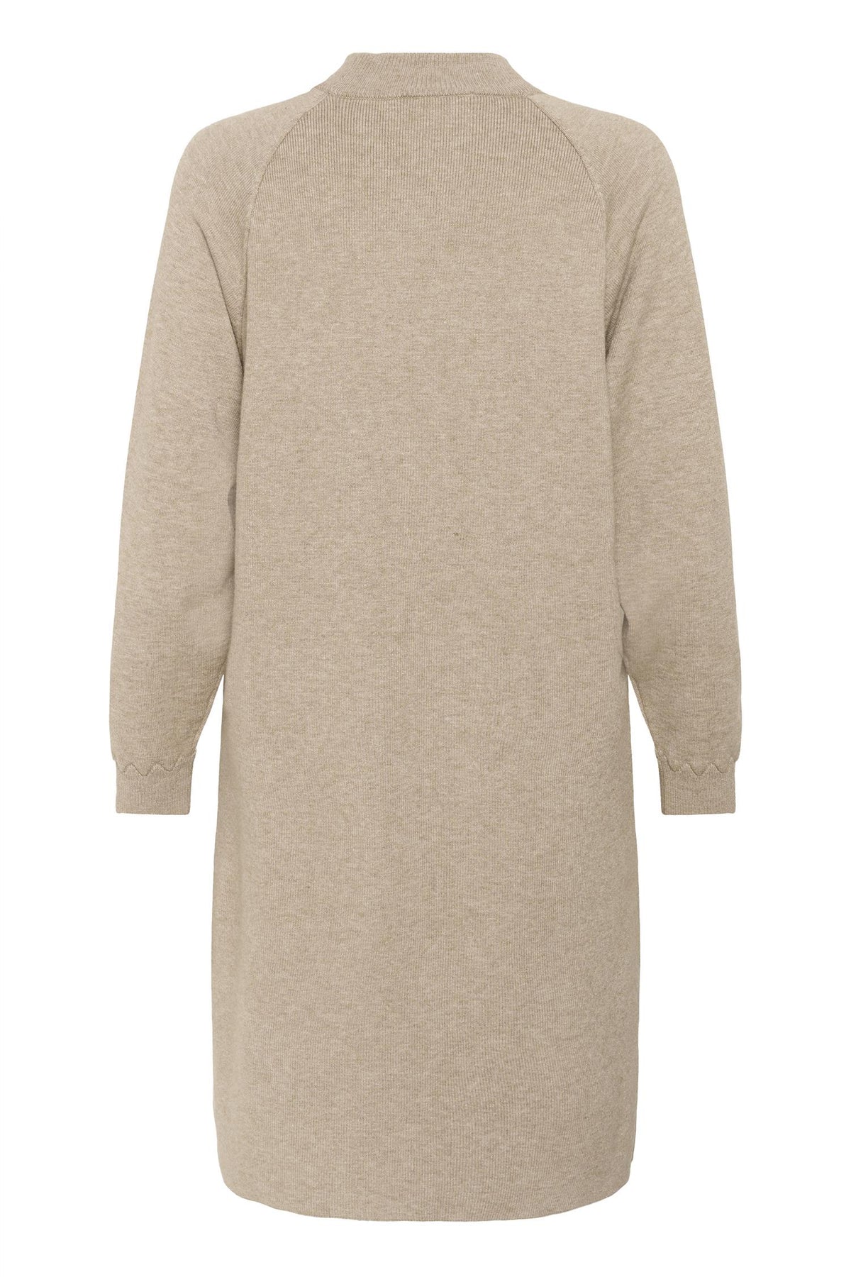 Kjolen har rund hals, raglan innfesting av ermer og lengden er til kne. Passformen er regular. Hullmønster detalj nede ved håndledd.