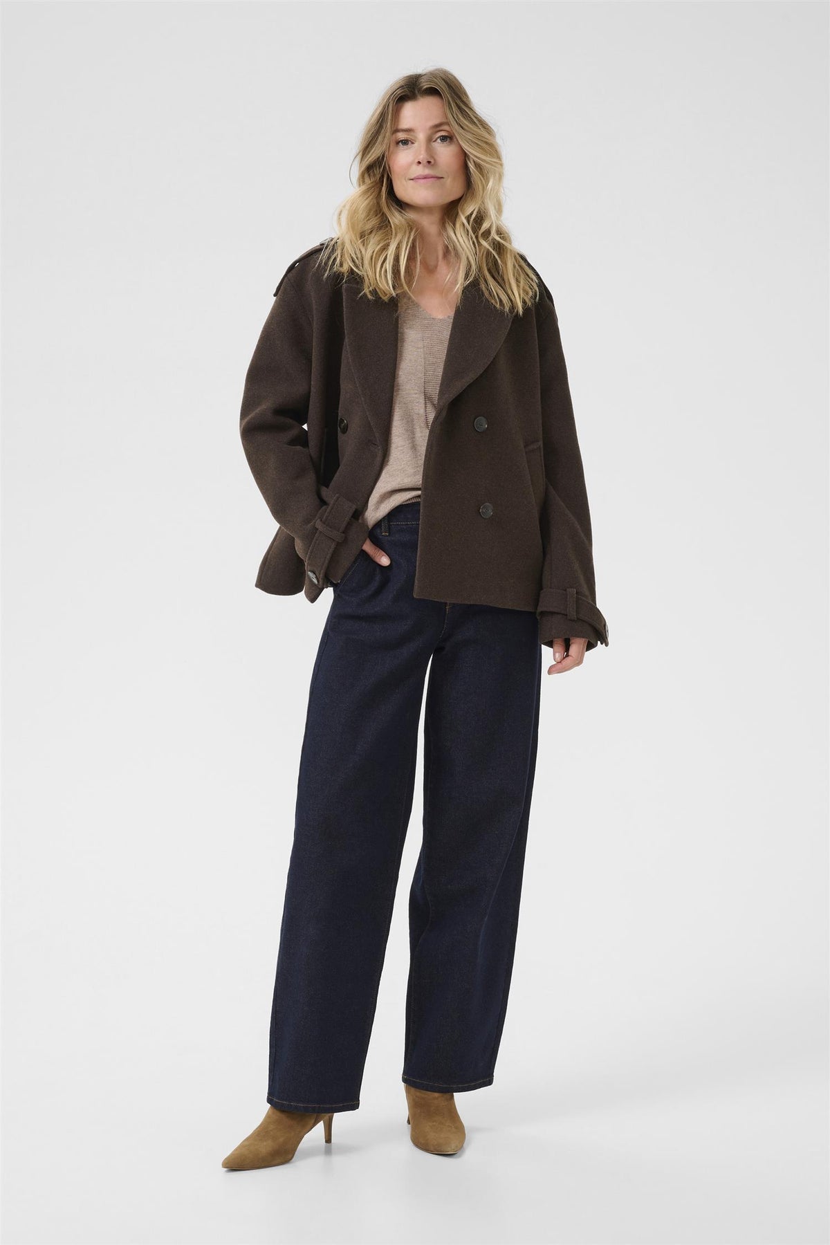 Lett oversized jakke i ull-mix med trench-detaljer.